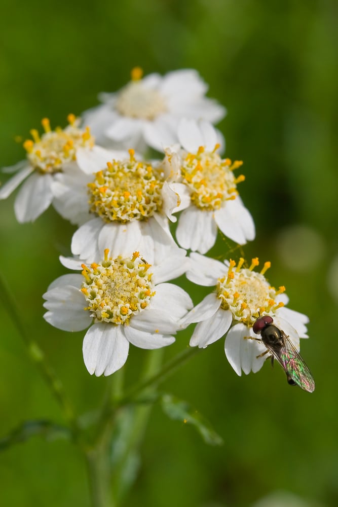 Sneezewort is an important source of pollen and nectar for small generalist and short-tongued pollinators, particularly hoverflies. It is mildly toxic to horses and, to a lesser extent, cattle and sheep. However, its bitter taste means it is usually avoided and rarely causes problems.