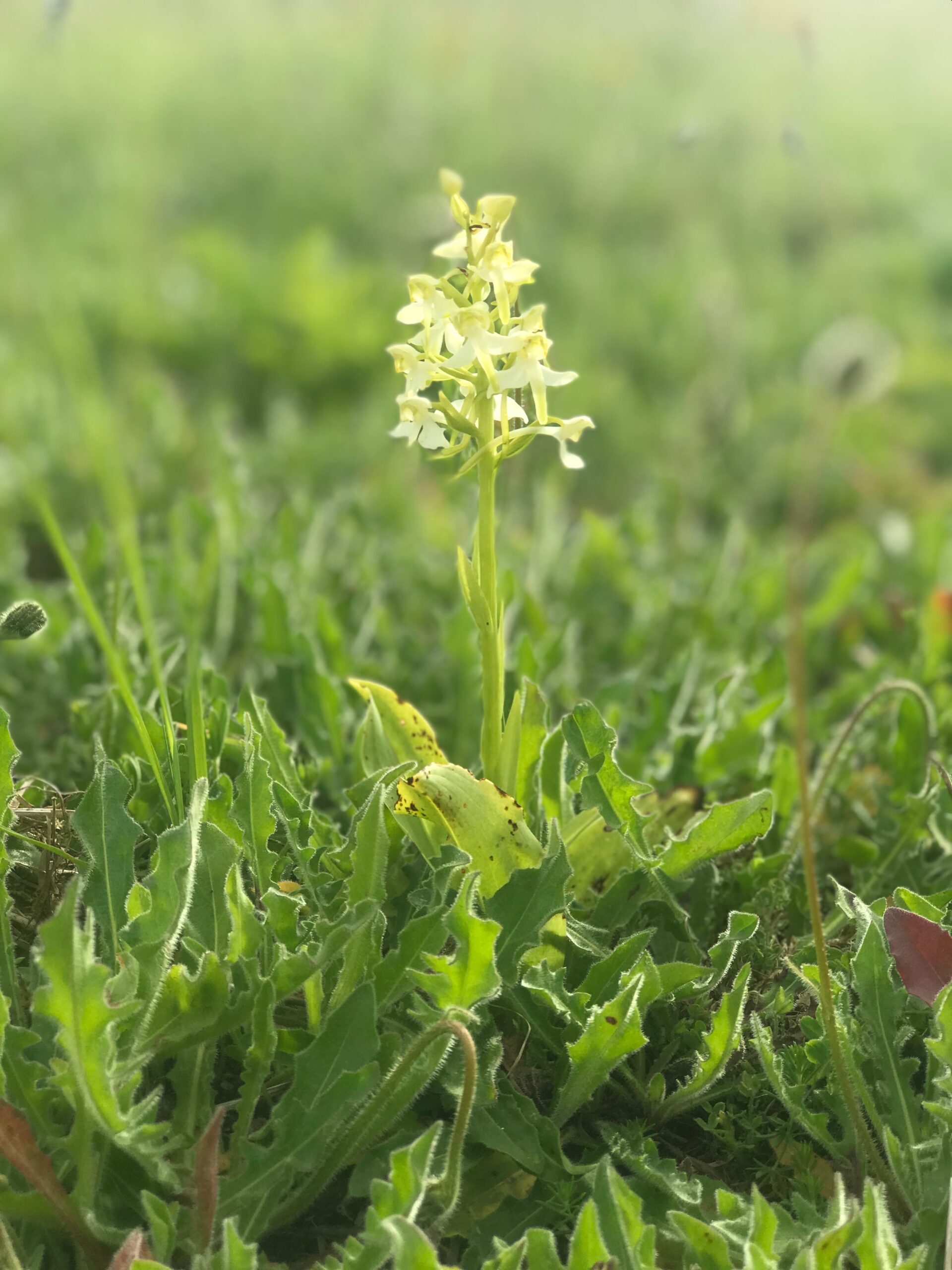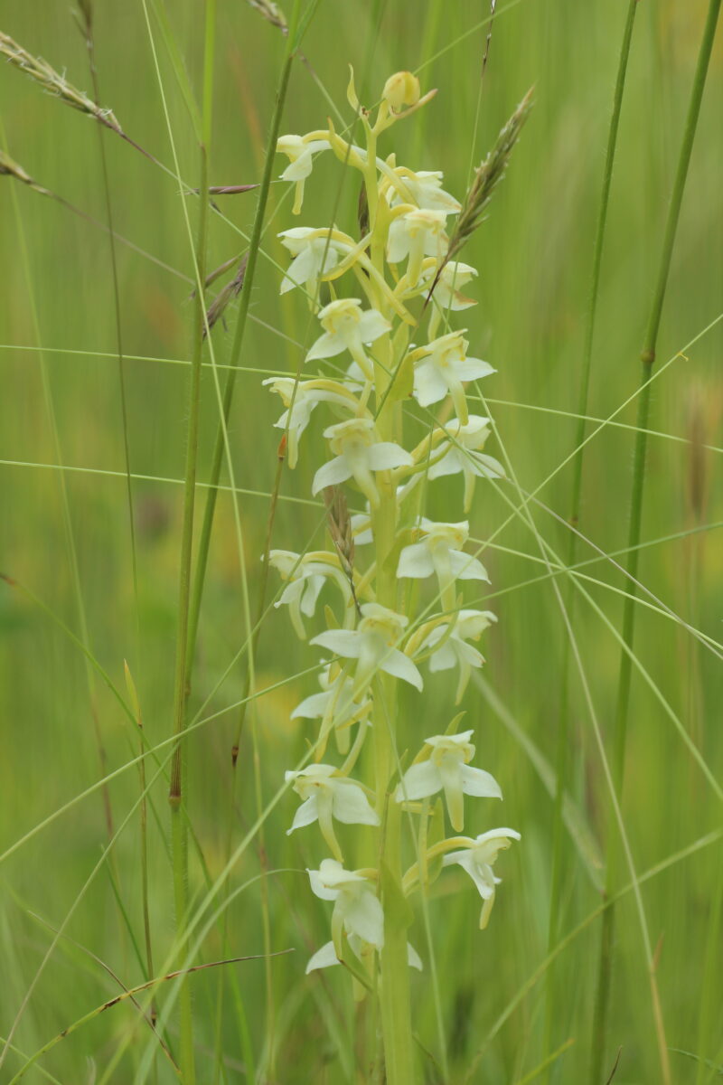 If you come across a tall, graceful orchid with pale, spurred flowers and two large ovate leaves at the base of its stem, you’ve likely found one of Britain’s two native Butterfly-orchids. In deciduous woodland, the Greater Butterfly-orchid is usually the taller species, while in open grassland—especially at higher altitudes—distinguishing it from the Lesser Butterfly-orchid can be more challenging.